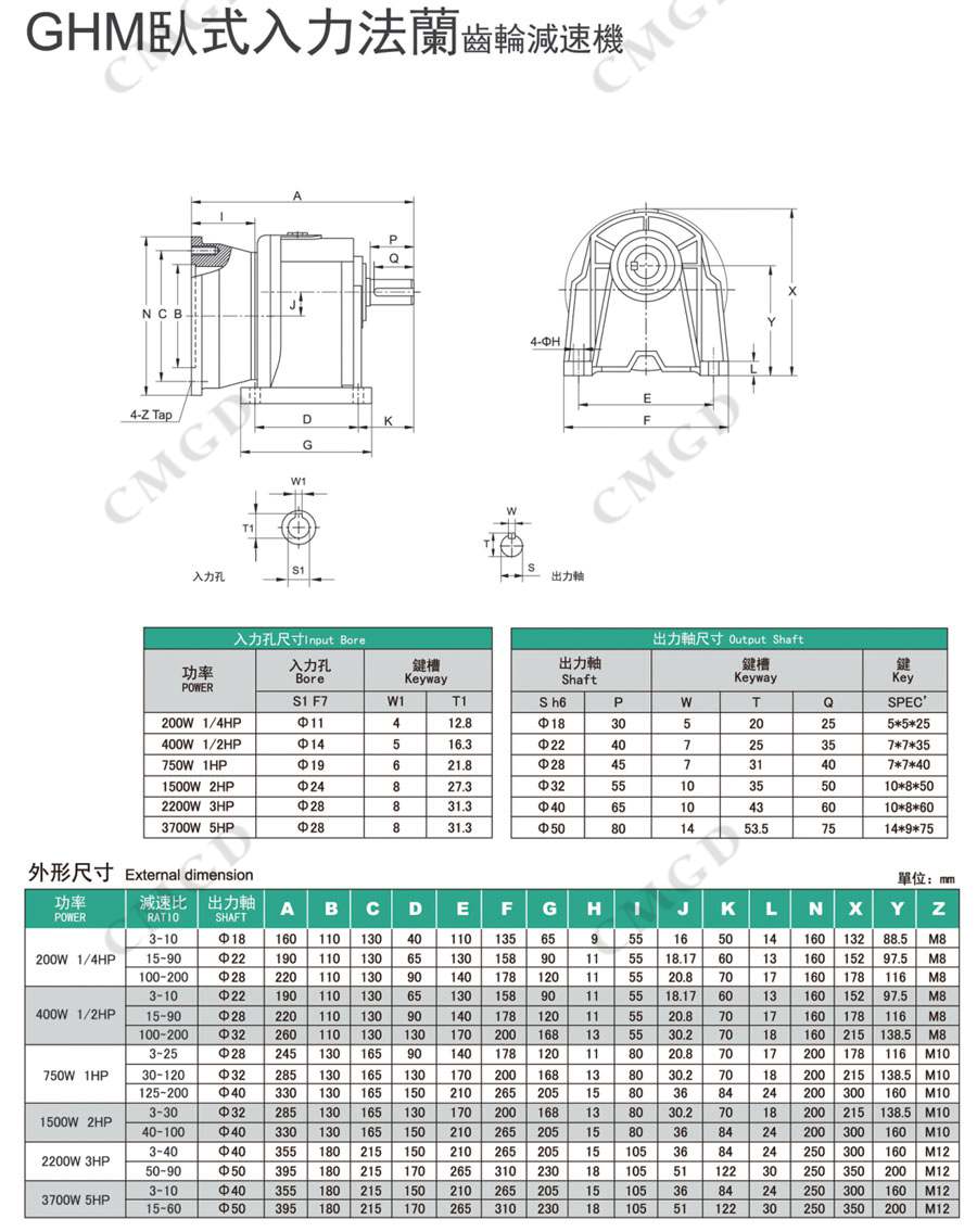 GHM臥式入力法蘭齒輪減速機