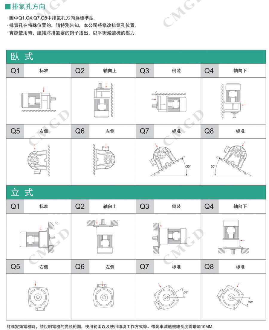 4、本公司所有電機(jī)均為鋁合材質(zhì)ADC-12、減速箱1-3號(hào)本體采用鋁合金材質(zhì)ADC-12,4-6號(hào)本體采用鑄鐵材質(zhì)FC-20或灰鐵250