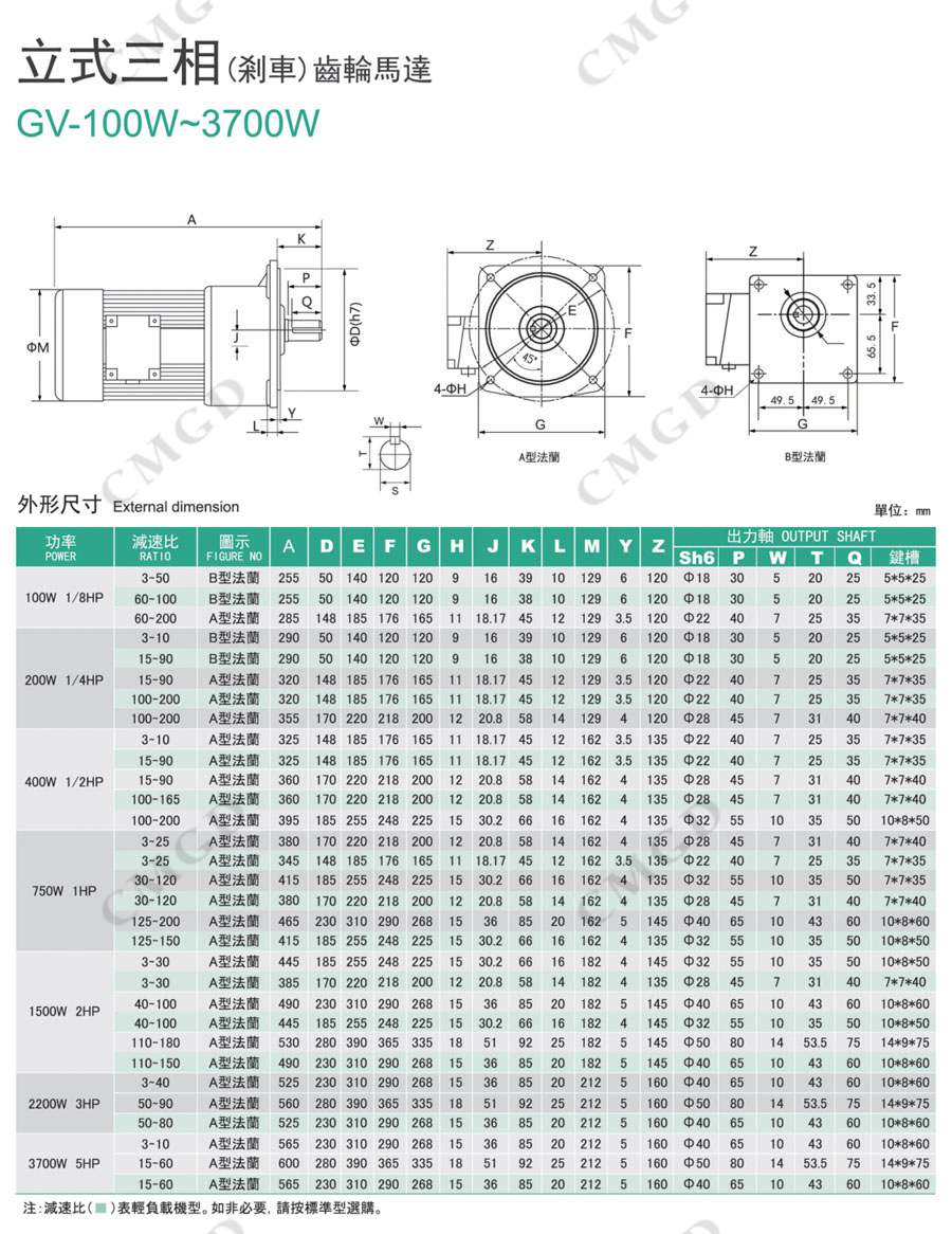 立式三相(剎車(chē))齒輪馬達(dá)